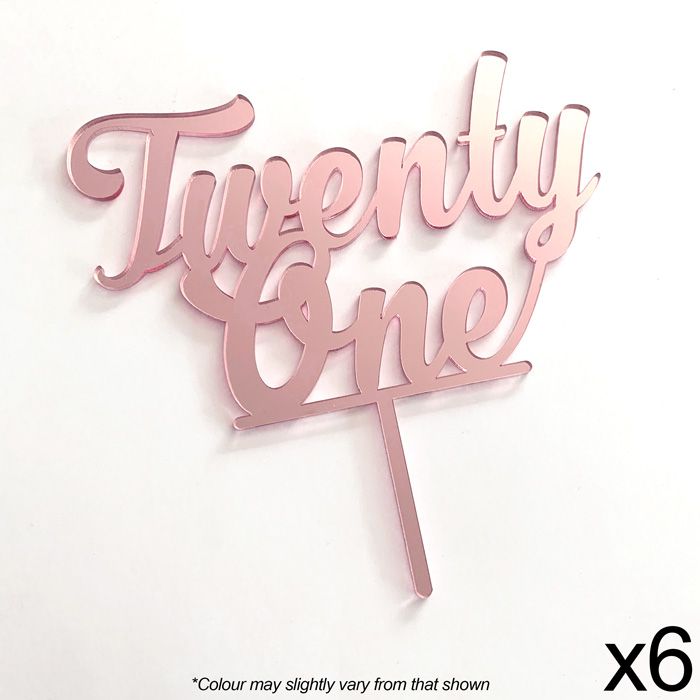NUMBER TWENTY ONE | ROSE GOLD MIRROR | ACRYLIC CAKE TOPPER | 6 PACK