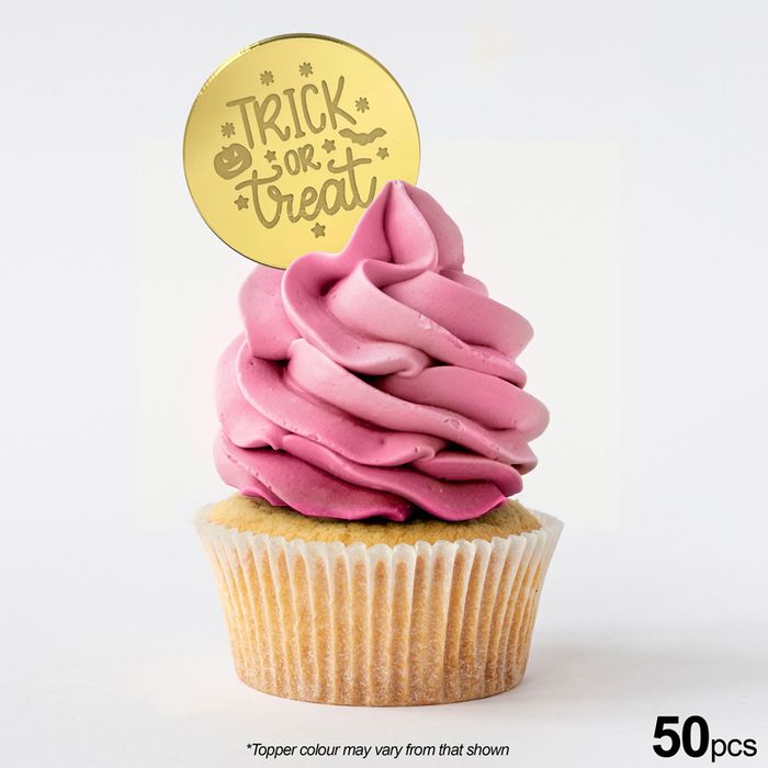 TRICK OR TREAT ROUND | GOLD | MIRROR TOPPER | 50 PACK