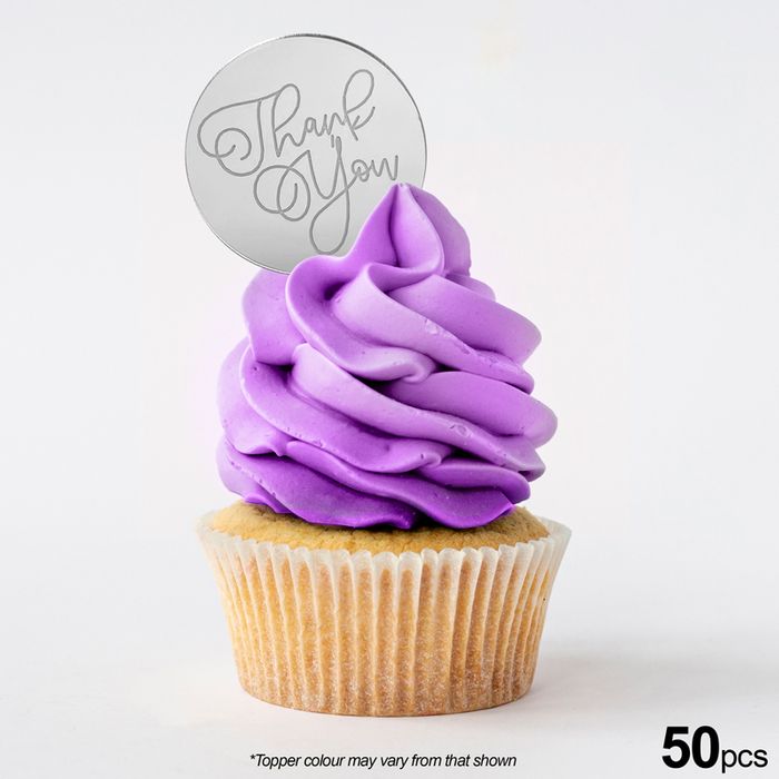 THANK YOU ROUND | SILVER | MIRROR TOPPER | 50 PACK