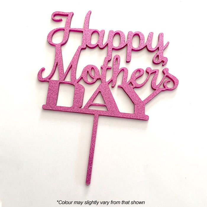 HAPPY MOTHERS DAY PINK GLITTER ACRYLIC CAKE TOPPER