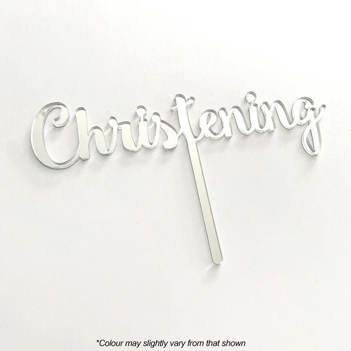 CHRISTENING SILVER MIRROR ACRYLIC CAKE TOPPER
