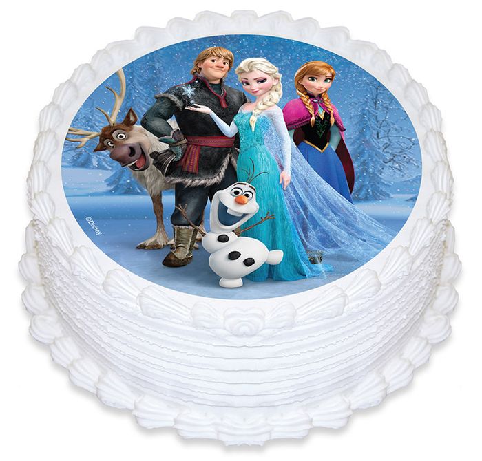 DISNEY FROZEN - GROUP ROUND EDIBLE ICING IMAGE - 6.3 INCH / 16CM