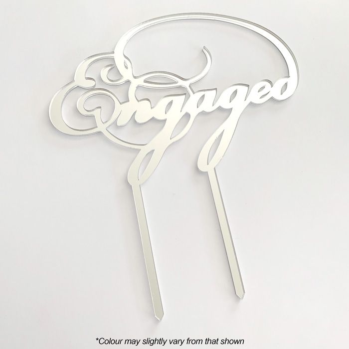ENGAGED SILVER MIRROR ACRYLIC CAKE TOPPER