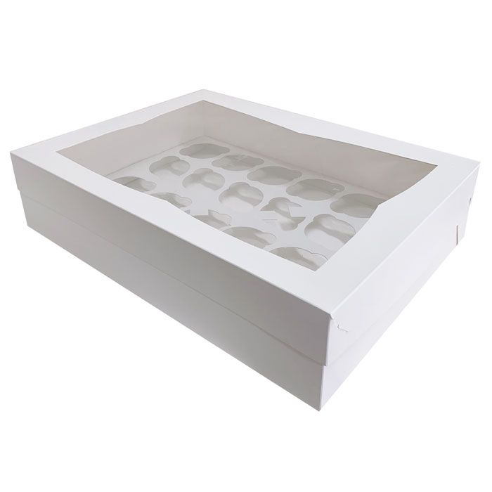 DISPLAY CUPCAKE BOX | 24 HOLES | STANDARD | 4 INCH HIGH | WHITE | PE COATED