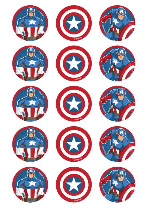 CAPTAIN AMERICA - 2 INCH/5CM CUPCAKE IMAGE SHEET - 15 PER SHEET