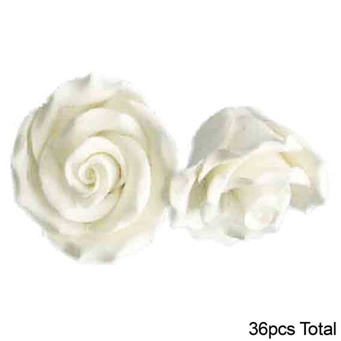 MEDIUM ROSE WHITE SUGAR FLOWERS | BOX OF 36