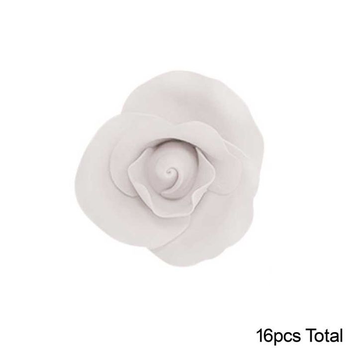 SINGLE ROSE MEDIUM WHITE | SUGAR FLOWERS | BOX OF 16 - BB 30/03/27