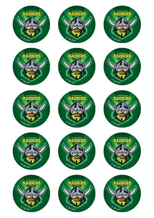 NRL CANBERRA RAIDERS 2 INCH/5CM CUPCAKE IMAGE SHEET - 15 PER SHEET