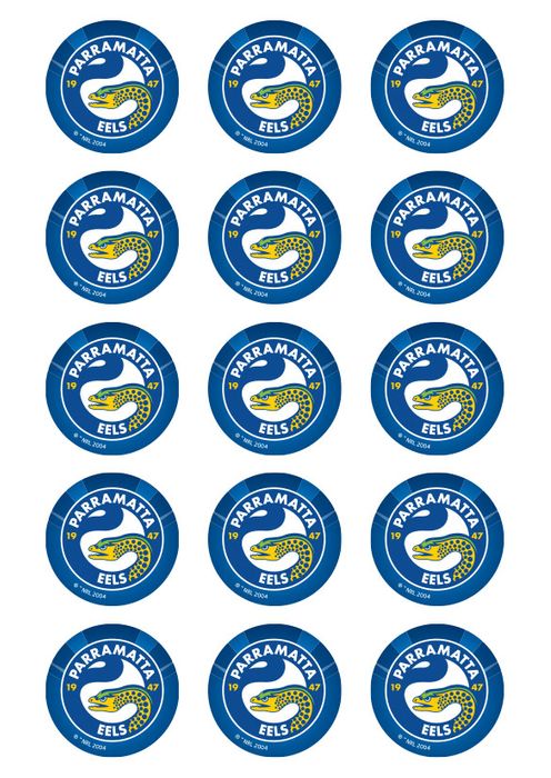 NRL PARRAMATTA EELS 2 INCH/5CM CUPCAKE IMAGE SHEET - 15 PER SHEET