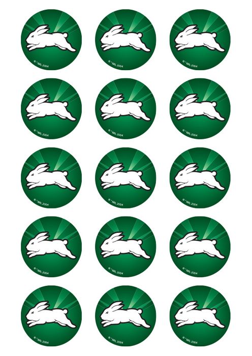 NRL SOUTH SYDNEY RABBITOHS 2 INCH/5CM CUPCAKE IMAGE SHEET - 15 PER SHEET