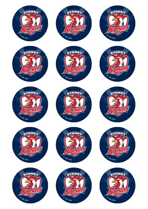 NRL SYDNEY ROOSTERS 2 INCH/5CM CUPCAKE IMAGE SHEET - 15 PER SHEET
