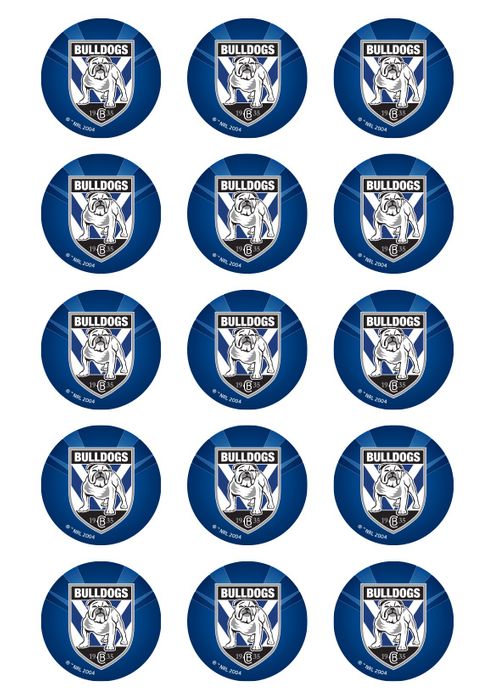 NRL CANTERBURY BULLDOGS 2 INCH/5CM CUPCAKE IMAGE SHEET - 15 PER SHEET