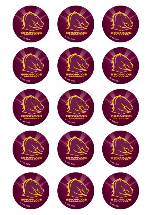 NRL BRISBANE BRONCOS 2 INCH/5CM CUPCAKE IMAGE SHEET - 15 PER SHEET