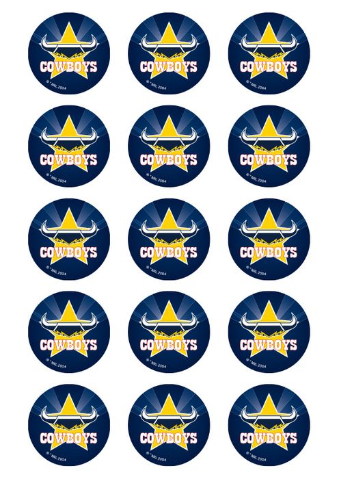 NRL NORTH QUEENSLAND COWBOYS 2 INCH/5CM CUPCAKE IMAGE SHEET - 15 PER SHEET