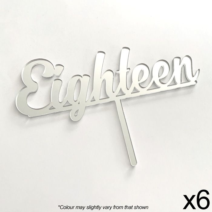 CAKE CRAFT | EIGHTEEN | SILVER MIRROR | ACRYLIC TOPPER | 6 PACK
