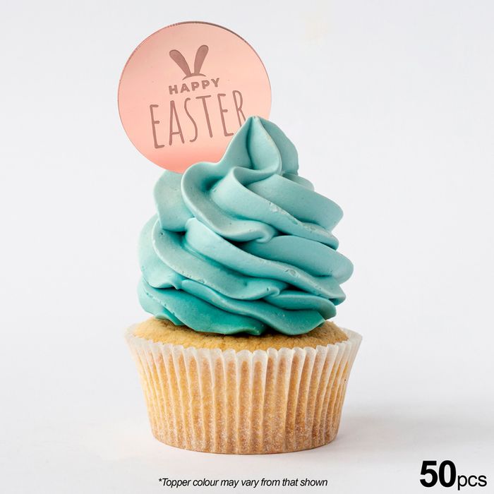 HAPPY EASTER ROUND | ROSE GOLD | MIRROR TOPPER | 50 PACK