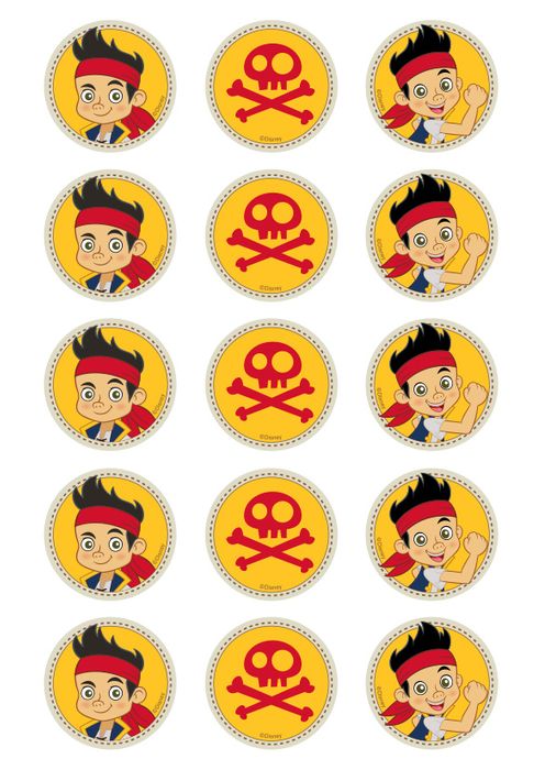 DISNEY JAKE AND THE NEVER LAND PIRATES 2 INCH/5CM CUPCAKE IMAGE SHEET - 15 PER SHEET