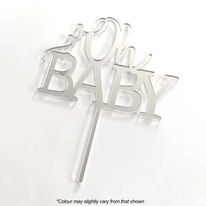 OH BABY SILVER MIRROR ACRYLIC CAKE TOPPER