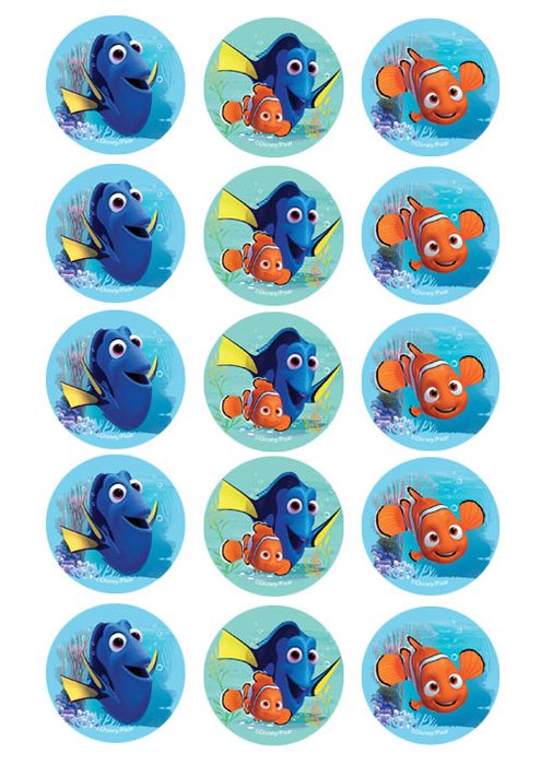 FINDING DORY 2 INCH/5CM CUPCAKE IMAGE SHEET - 15 PER SHEET