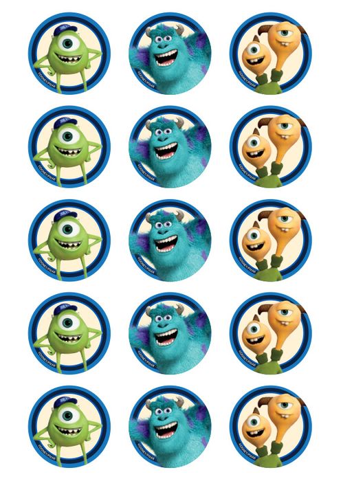 MONSTERS UNI 2 INCH/5CM CUPCAKE IMAGE SHEET - 15 PER SHEET