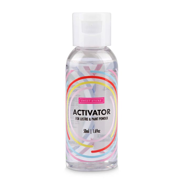 Sweet Sticks Original Activator is designed to turn any powder into a beautiful, luscious, easy to use food paint. The combination of ingredients allows your powders to fill full of body and give you enough time to work with your designs and dry without any fuss. The Original Activator works on with all fat and oil based products therefore can be applied on buttercreams and chocolate along with all your other favourite mediums.
