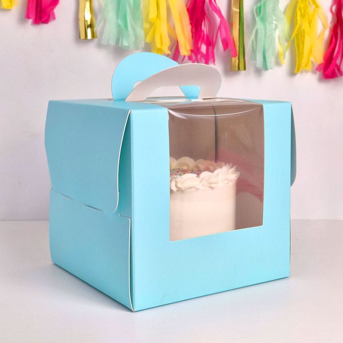 CAKE CRAFT | BLUE | 8.2X8.2X7.8 INCH | TOP HANDLE WINDOW CAKE BOX | RETAIL PACK