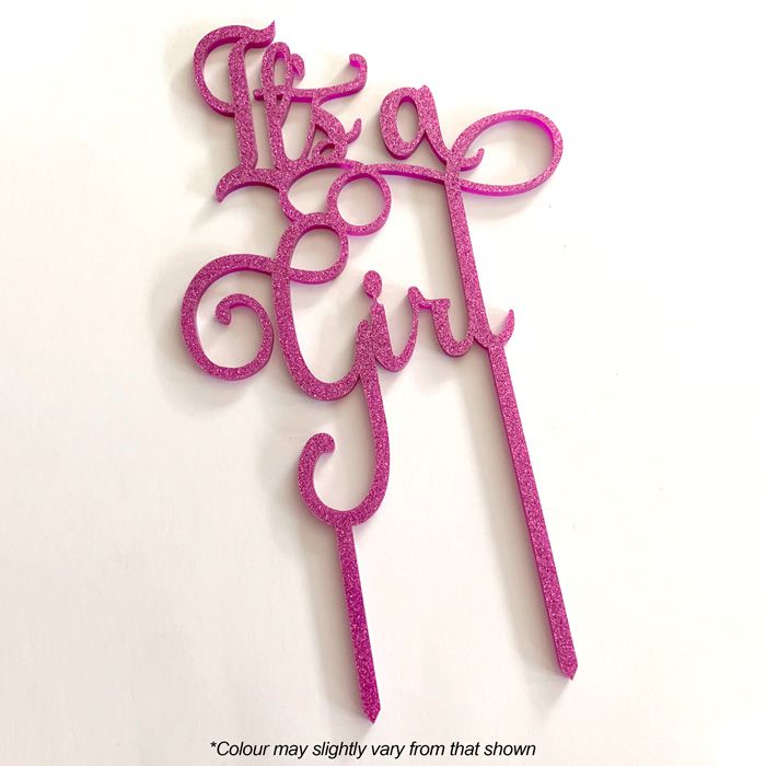 IT'S A GIRL PINK GLITTER ACRYLIC CAKE TOPPER