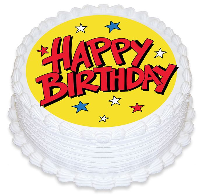 HAPPY BIRTHDAY STARS ROUND EDIBLE ICING IMAGE - 6.3 INCH / 16CM