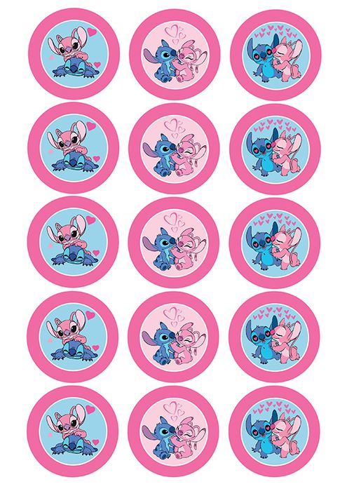 STITCH & ANGEL - 2 INCH/5CM CUPCAKE IMAGE SHEET - 15 PER SHEET