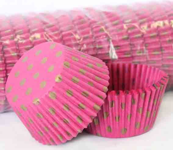 700 BAKING CUPS - PINK/GOLD POLKA DOTS - 500 PIECE PACK