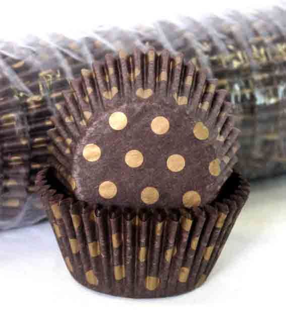 408 BAKING CUPS - CHOCOLATE/GOLD POLKA DOTS - 500 PIECE PACK