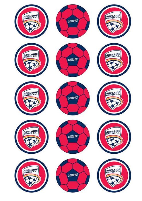 A-LEAGUE ADELAIDE UNITED FC 2 INCH/5CM CUPCAKE IMAGE SHEET - 15 PER SHEET