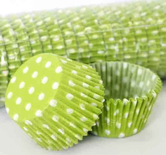 700 BAKING CUPS - LIME GREEN POLKA DOTS - 500 PIECE PACK