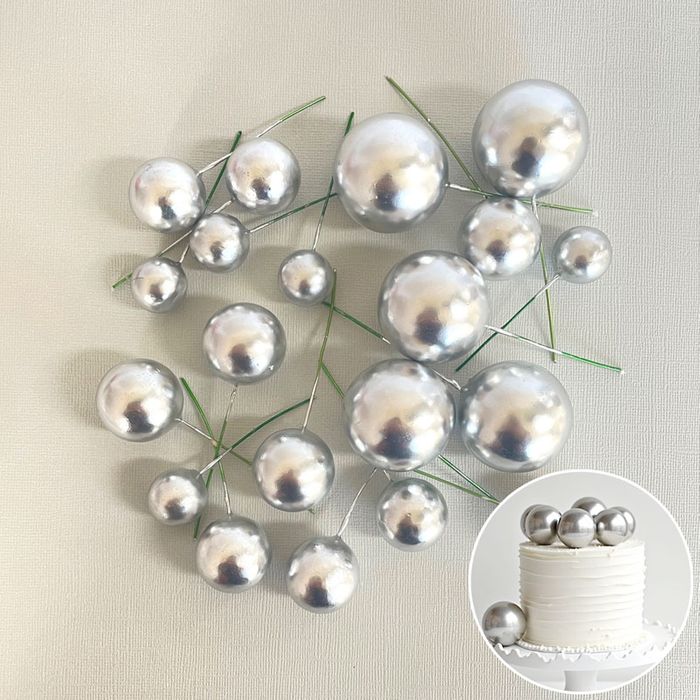 SILVER | DECO FOAM BALL TOPPER | 20 PC SET
