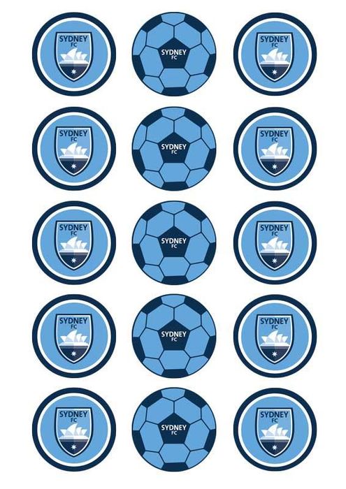 A-LEAGUE SYDNEY FC 2 INCH/5CM CUPCAKE IMAGE SHEET - 15 PER SHEET