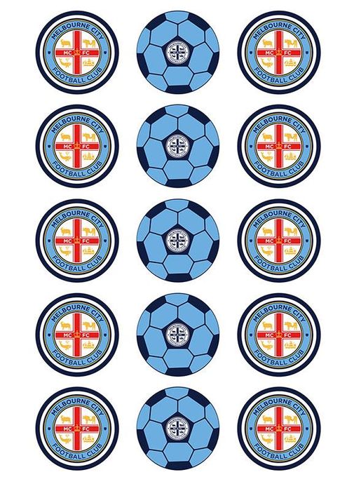 A-LEAGUE MELBOURNE CITY FC 2 INCH/5CM CUPCAKE IMAGE SHEET - 15 PER SHEET