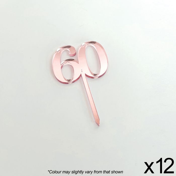 CAKE CRAFT | #60 | 3.5CM | ROSE GOLD MIRROR | ACRYLIC CUPCAKE TOPPER | 12 PACK